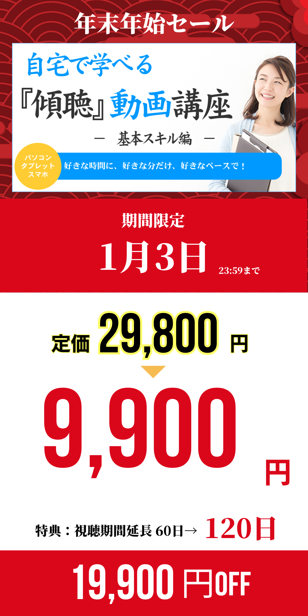 ※この商品は「傾聴サポーター養成講座」や「傾聴1日講座」など他の講座とは関係がありません。