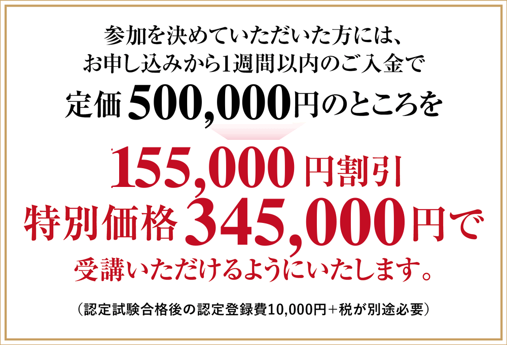 カウンセラーに限らずこれからの人生のあらゆる場面で、相談に乗っていきたいと思っている人や、業務上大切な話を聴く役割を持っている人にとって、生涯かけて得られるリターンを考えれば、決して高い金額ではありません。